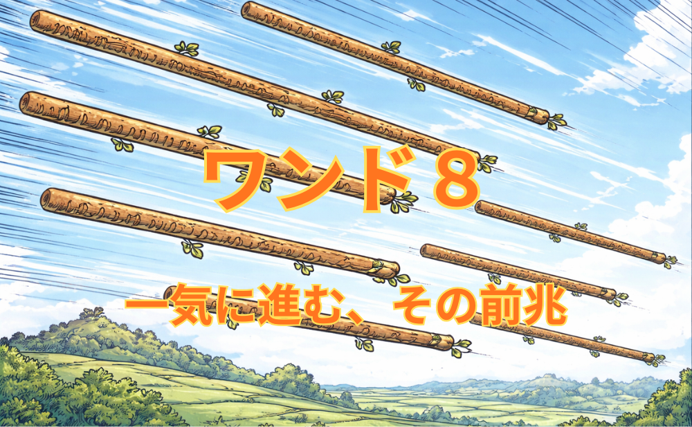 タロット「ワンド8」キーワード総まとめ|正位置・逆位置で変わる流れの意味をやさしく整理