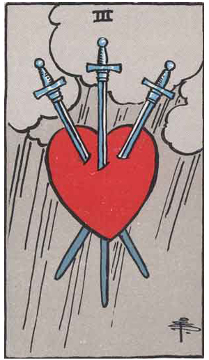 ・ソード3の絵柄は「ハート・3本の剣・雨」で感情の揺れを象徴