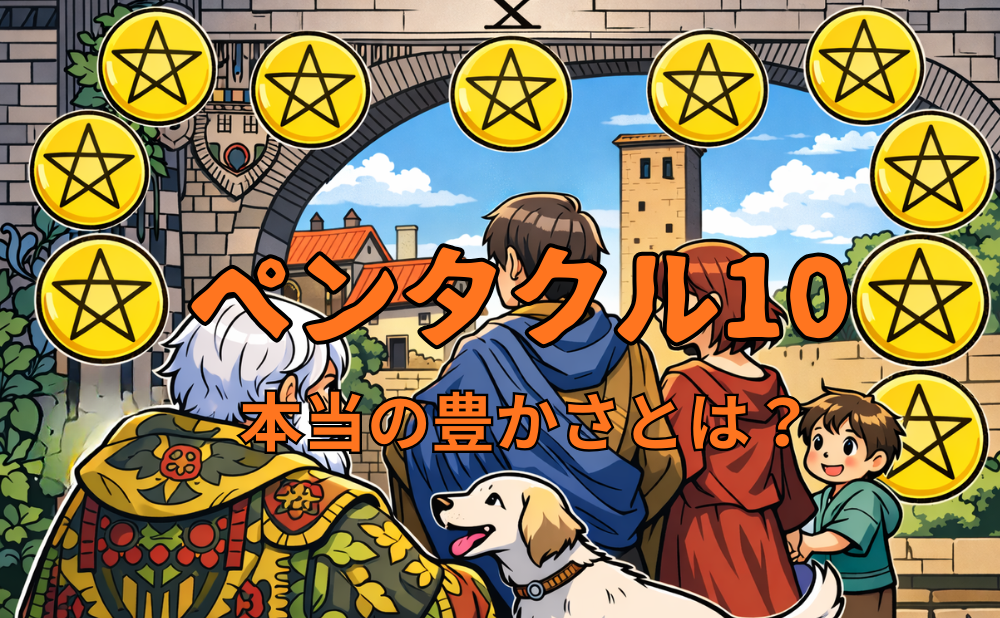 タロットのペンタクル10が出たとき、「この安心は続く?」「相手の気持ちは?」と揺れませんか。キーワード、絵柄、テーマを手がかりに、正位置逆位置のメッセージと本音をわかりやすく解きほぐします。