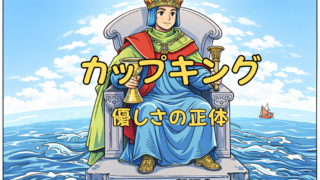 タロットのカップキングを詳しく解説。キーワード、絵柄、テーマ、メッセージ、本音、相手の気持ちをもとに、正位置・逆位置の意味をわかりやすく整理しました。やさしさの奥にある心の動きまで読み解けます。
