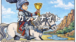 タロットのカップナイトをわかりやすく解説。キーワード、絵柄、テーマ、メッセージ、本音、相手の気持ちを整理し、正位置・逆位置それぞれの意味や読み方をやさしく読み解きます。
