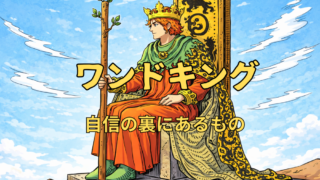 タロットのワンドキングを、キーワード・絵柄・テーマ・メッセージの視点からやさしく解説。本音や相手の気持ち、正位置・逆位置の違いまで整理し、意味の読み方が自然と深まる内容をまとめています。