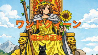 タロットのワンドクィーンについて、キーワード・絵柄・テーマ・メッセージ・本音・相手の気持ちを正位置と逆位置の違いまで分かりやすく解説。ワンドクィーンの意味を深く読みたい方に役立つ内容です。